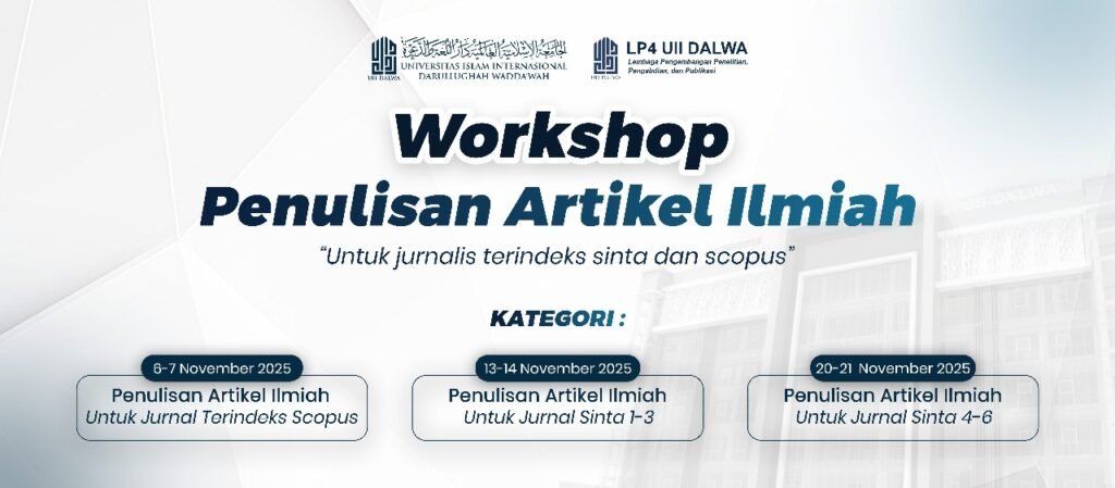 Pasuruan, kamis 6 November 2025 Universitas Islam Internasional Darullugha Wadda’wah UII DALWA menyelenggarakan Workshop Penulisan Artikel Ilmiah – untuk Junalis Terindeks Sinta dan Scopus yang bertempatan di Hotel dalwa, Kegiatan ini berlansung mulai pukul 10.00 hingga 17.00 Wib dan diikuti para dosen yang memiliki minat dalam bidang penelitian dan publikasi ilmiah. Worshop Ini menghadirkan narasumber […]