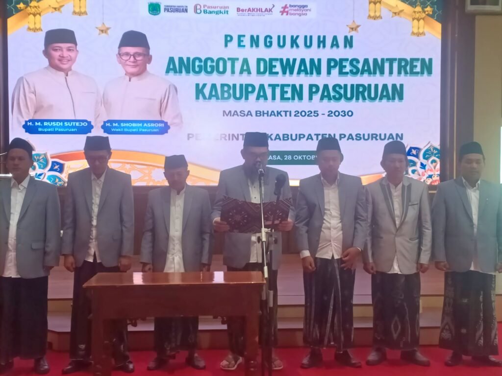 UII DALWA – Dalam momentum peringatan Hari Santri Nasional (HSN) 2025, Pemerintah Kabupaten Pasuruan secara resmi membentuk Dewan Pesantren sebagai wadah koordinasi dan pengembangan pendidikan pesantren di tingkat daerah. Acara pelantikan berlangsung di Auditorium Mpu Sindok Kompleks Kantor Bupati Pasuruan Raci Kecamatan Bangil, pada Selasa (28/10/2025). Pelantikan dipimpin langsung oleh Wakil Bupati Pasuruan, KH. Shobih Asrori, […]