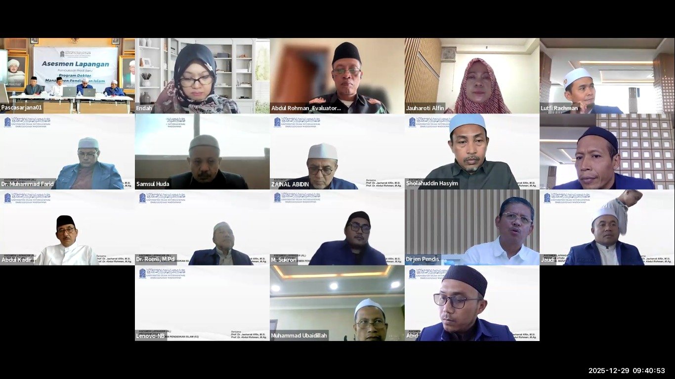 UII DALWA – Program Studi Manajemen Pendidikan Islam (MPI) Program Doktor (S3) UII Dalwa melaksanakan Asesmen Lapangan (AL) secara daring pada Senin, 29 Desember 2025. Kegiatan ini menjadi bagian strategis dalam proses penjaminan dan peningkatan mutu akademik perguruan tinggi pada tingkat doktoral.