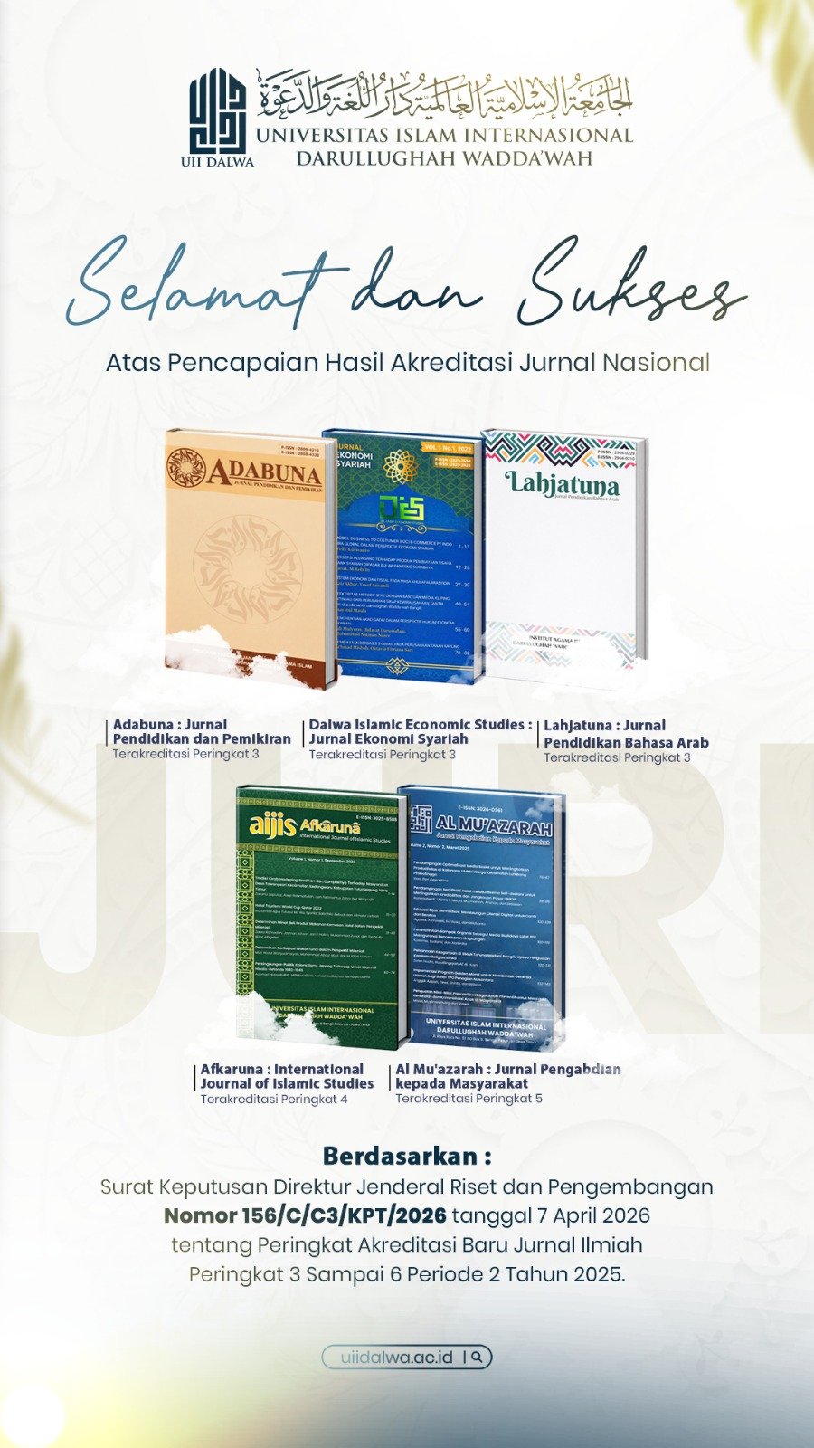 UII DALWA – Universitas Islam Internasional Darullughah Wadda’wah kembali menorehkan prestasi akademik di tingkat nasional melalui capaian akreditasi sejumlah jurnal ilmiah yang dikelola. Pengakuan ini diberikan berdasarkan Direktorat Jenderal Riset dan Pengembangan melalui Surat Keputusan Nomor 156/C/C3/KPT/2026 tertanggal 7 April 2026 tentang Peringkat Akreditasi Baru Jurnal Ilmiah Peringkat 3 sampai 6 Periode II Tahun 2025.