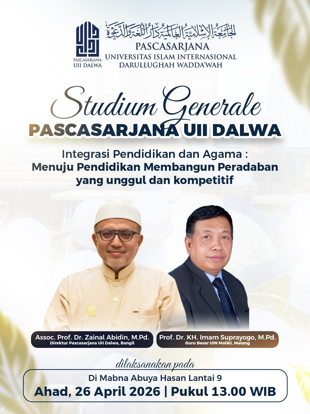 UII DALWA – Pascasarjana UII Dalwa menyelenggarakan kegiatan studium generale bertema “Integrasi Pendidikan dan Agama Menuju Peradaban yang Unggul dan Kompetitif” pada Ahad (26/4/2026). Kegiatan ini berlangsung di lantai 9 Mabna Abuya Hasan, Bangil, dan menghadirkan Guru Besar UIN Maulana Malik Ibrahim Malang, Prof. Dr. Imam Suprayogo,M.Pd. sebagai narasumber utama.